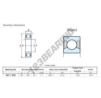 Łożysko Kulkowe, znane jako 6011-2RS-JTEKT JTEKT, ma średnicę wewnętrzną 55mm, średnicę zewnętrzną 90mm i grubość 18mm.