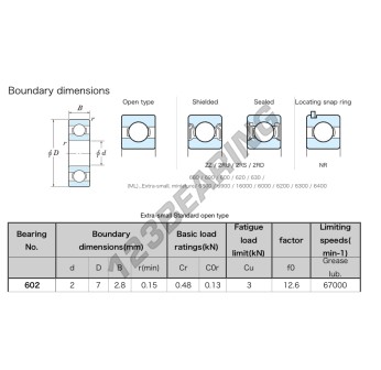Łożysko Kulkowe, znane jako 602-JTEKT JTEKT, ma średnicę wewnętrzną 2mm, średnicę zewnętrzną 7mm i grubość 2.8mm.