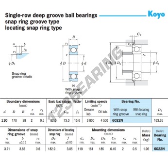 Łożysko Kulkowe, znane jako 6022-N-JTEKT JTEKT, ma średnicę wewnętrzną 110mm, średnicę zewnętrzną 170mm i grubość 28mm.