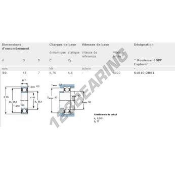 Łożysko Kulkowe, znane jako 61810-2RS1-SKF SKF, ma średnicę wewnętrzną 50mm, średnicę zewnętrzną 65mm i grubość 7mm.
