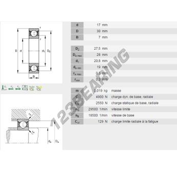 Łożysko Kulkowe, znane jako 61903-ZZ-INA INA, ma średnicę wewnętrzną 17mm, średnicę zewnętrzną 30mm i grubość 7mm.