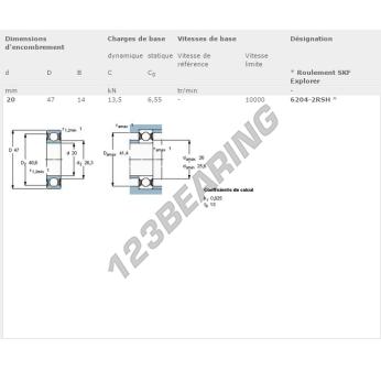 Łożysko Kulkowe, znane jako 6204-2RSH-SKF SKF, ma średnicę wewnętrzną 20mm, średnicę zewnętrzną 47mm i grubość 14mm.