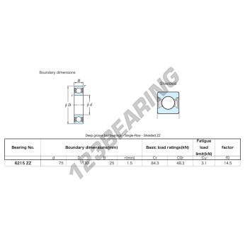 Łożysko Kulkowe, znane jako 6215-ZZ-JTEKT JTEKT, ma średnicę wewnętrzną 75mm, średnicę zewnętrzną 130mm i grubość 25mm.