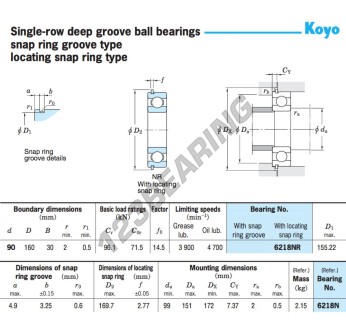 Łożysko Kulkowe, znane jako 6218-NR-JTEKT JTEKT, ma średnicę wewnętrzną 90mm, średnicę zewnętrzną 169.7mm i grubość 30mm.