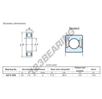 Łożysko Kulkowe, znane jako 6310-2RS-JTEKT JTEKT, ma średnicę wewnętrzną 50mm, średnicę zewnętrzną 110mm i grubość 27mm.