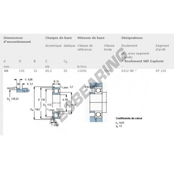 Łożysko Kulkowe, znane jako 6312-NR-SKF SKF, ma średnicę wewnętrzną 60mm, średnicę zewnętrzną 130mm i grubość 31mm.