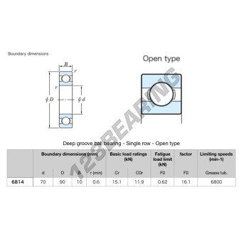 Łożysko Kulkowe, znane jako 6814-JTEKT JTEKT, ma średnicę wewnętrzną 70mm, średnicę zewnętrzną 90mm i grubość 10mm.