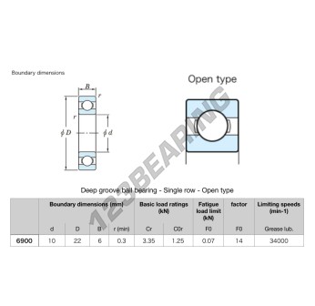 Łożysko Kulkowe, znane jako 6900-JTEKT JTEKT, ma średnicę wewnętrzną 10mm, średnicę zewnętrzną 22mm i grubość 6mm.