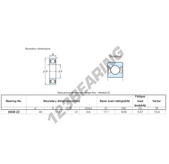 Łożysko Kulkowe, znane jako 6908-ZZ-JTEKT JTEKT, ma średnicę wewnętrzną 40mm, średnicę zewnętrzną 62mm i grubość 12mm.