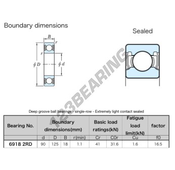 Łożysko Kulkowe, znane jako 6918-2RD-JTEKT JTEKT, ma średnicę wewnętrzną 90mm, średnicę zewnętrzną 125mm i grubość 18mm.