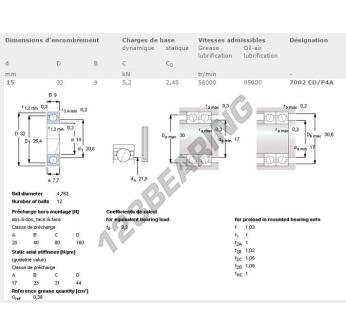 Łożysko Kulkowe, znane jako 7002CD-P4A-SKF SKF, ma średnicę wewnętrzną 15mm, średnicę zewnętrzną 32mm i grubość 9mm.
