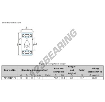 Łożysko Kulkowe, znane jako 7012-CDF-FY-JTEKT JTEKT, ma średnicę wewnętrzną 60mm, średnicę zewnętrzną 95mm i grubość 36mm.