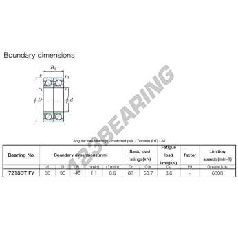 Łożysko Kulkowe, znane jako 7210-DT-FY-JTEKT JTEKT, ma średnicę wewnętrzną 50mm, średnicę zewnętrzną 90mm i grubość 40mm.