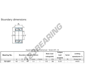 Łożysko Kulkowe, znane jako 7212-DT-JTEKT JTEKT, ma średnicę wewnętrzną 60mm, średnicę zewnętrzną 110mm i grubość 44mm.