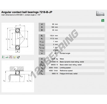 Łożysko Kulkowe, znane jako 7218-B-JP-FAG FAG, ma średnicę wewnętrzną 90mm, średnicę zewnętrzną 160mm i grubość 30mm.