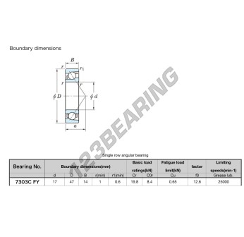 Łożysko Kulkowe, znane jako 7303-C-FY-JTEKT JTEKT, ma średnicę wewnętrzną 17mm, średnicę zewnętrzną 47mm i grubość 14mm.