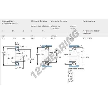 Łożysko Kulkowe, znane jako 7317-BEP-SKF SKF, ma średnicę wewnętrzną 85mm, średnicę zewnętrzną 180mm i grubość 41mm.