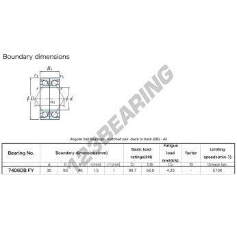 Łożysko Kulkowe, znane jako 7406-DB-FY-JTEKT JTEKT, ma średnicę wewnętrzną 30mm, średnicę zewnętrzną 90mm i grubość 46mm.
