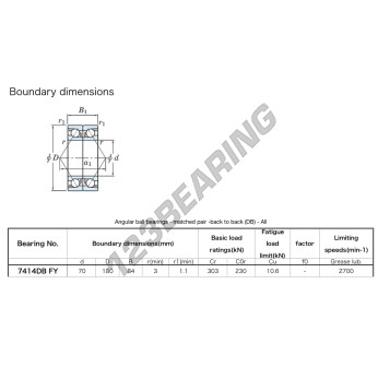 Łożysko Kulkowe, znane jako 7414-DB-FY-JTEKT JTEKT, ma średnicę wewnętrzną 70mm, średnicę zewnętrzną 180mm i grubość 84mm.