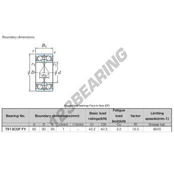 Łożysko Kulkowe, znane jako 7913-CDF-JTEKT JTEKT, ma średnicę wewnętrzną 65mm, średnicę zewnętrzną 90mm i grubość 26mm.