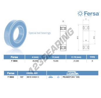 Łożysko Kulkowe, znane jako F18043-ASFERSA ASFERSA, ma średnicę wewnętrzną 28mm, średnicę zewnętrzną 75mm i grubość 21mm.