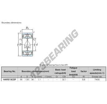Łożysko Kulkowe, znane jako HAR-919-CDF-JTEKT JTEKT, ma średnicę wewnętrzną 95mm, średnicę zewnętrzną 130mm i grubość 36mm.