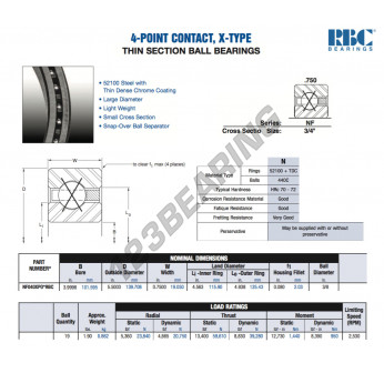 Łożysko Kulkowe, znane jako NF040-XP0-RBC RBC, ma średnicę wewnętrzną 101.595mm, średnicę zewnętrzną 139.708mm i grubość 19.05mm.