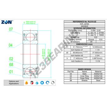 RS, 2RS, 2RSH, 2RS1, RSR, 2RSR, E, EE, LLU, LLB, DU, DDU