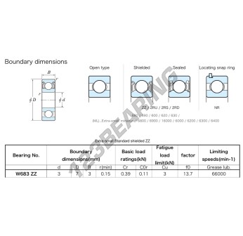 Łożysko Kulkowe, znane jako W683-ZZ-JTEKT JTEKT, ma średnicę wewnętrzną 3mm, średnicę zewnętrzną 7mm i grubość 3mm.