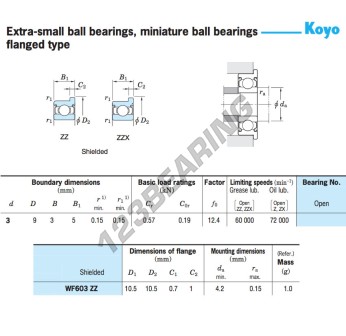 Łożysko Kulkowe, znane jako WF603-ZZ-JTEKT JTEKT, ma średnicę wewnętrzną 3mm, średnicę zewnętrzną 9mm i grubość 5mm.