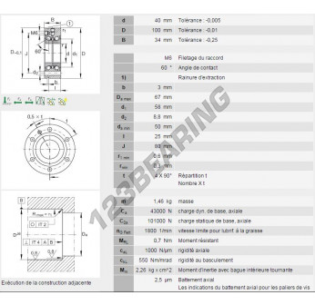 Łożysko Kulkowe, znane jako ZKLF40100-2RS-INA INA, ma średnicę wewnętrzną 40mm, średnicę zewnętrzną 100mm i grubość 34mm.