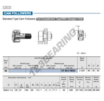 Popychacz Krzywkowy, znany pod numerem referencyjnym CFKR90-VUU-IKO, marki IKO, ma średnicę wewnętrzną 30mm, średnicę zewnętrzną 90mm oraz grubość 35mm.