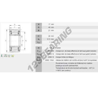 Rolka Prowadząca Z łożyskiem Kulkowym, znany pod numerem referencyjnym NATR17-PP-INA, marki INA, posiada średnicę wewnętrzną 17 mm, średnicę zewnętrzną 40 mm oraz grubość 21 mm.