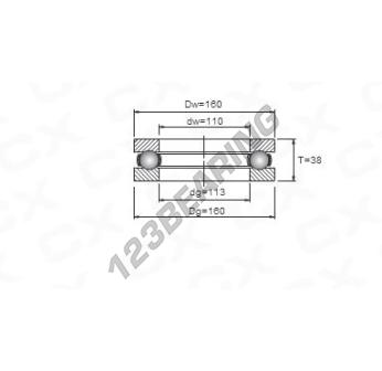 Łożysko Kulkowe Wzdłużne, znana pod numerem referencyjnym 51222, marki Ogólny, ma średnicę wewnętrzną 110mm, średnicę zewnętrzną 160mm oraz grubość 38mm.