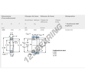Łożysko Stożkowe, znany pod numerem referencyjnym 31328XJ2-SKF, marki SKF, posiada wewnętrzną średnicę 140mm, zewnętrzną średnicę 300mm oraz grubość 77mm.