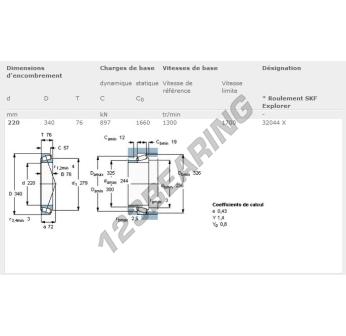 Łożysko Stożkowe, znany pod numerem referencyjnym 32044X-SKF, marki SKF, posiada wewnętrzną średnicę 220mm, zewnętrzną średnicę 340mm oraz grubość 76mm.