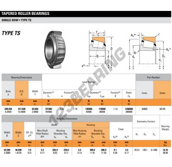 Łożysko Stożkowe, znany pod numerem referencyjnym 93825-93125-TIMKEN, marki TIMKEN, posiada wewnętrzną średnicę 209.55mm, zewnętrzną średnicę 317.5mm oraz grubość 63.5mm.