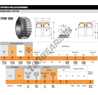 Łożysko Stożkowe, znany pod numerem referencyjnym EE147112-147198D-TIMKEN, marki TIMKEN, posiada wewnętrzną średnicę 285.75mm, zewnętrzną średnicę 501.65mm oraz grubość 202.2mm.