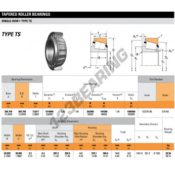 Łożysko Stożkowe, znany pod numerem referencyjnym EE275105-275155-TIMKEN, marki TIMKEN, posiada wewnętrzną średnicę 266.7mm, zewnętrzną średnicę 393.7mm oraz grubość 73.817mm.
