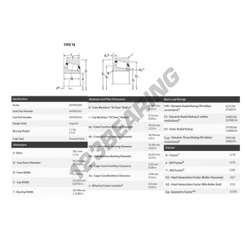 Łożysko Stożkowe, znany pod numerem referencyjnym HM903241-HM903210-TIMKEN, marki TIMKEN, posiada wewnętrzną średnicę 38.1mm, zewnętrzną średnicę 95.25mm oraz grubość 28.575mm.