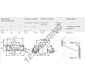 Łożysko Wałeczkowe Wzdłużne, o numerze referencyjnym 29322-E-SKF, marki SKF, posiada średnicę wewnętrzną 110 mm, średnicę zewnętrzną 190 mm oraz grubość 48 mm.