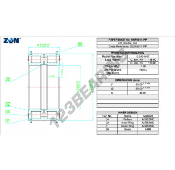 Łożysko Wałeczkowe, znany pod numerem referencyjnym NNF5011-PP-V-ZEN, marki ZEN, posiada średnicę wewnętrzną 55 mm, średnicę zewnętrzną 90 mm oraz grubość 46 mm.