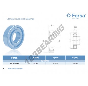 Łożysko Wałeczkowe, znany pod numerem referencyjnym NU1011-FM-ASFERSA, marki ASFERSA, posiada średnicę wewnętrzną 55 mm, średnicę zewnętrzną 90 mm oraz grubość 18 mm.