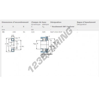 Łożysko Wałeczkowe, znany pod numerem referencyjnym NUP2314-ECP-SKF, marki SKF, posiada średnicę wewnętrzną 70 mm, średnicę zewnętrzną 150 mm oraz grubość 51 mm.
