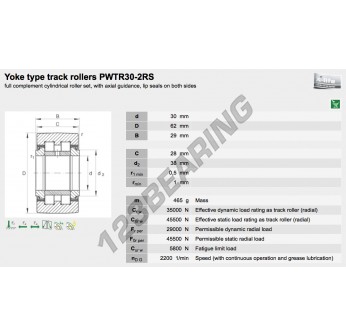 Łożysko Wałeczkowe, znany pod numerem referencyjnym PWTR30-2RS-XL-INA, marki INA, posiada średnicę wewnętrzną 30 mm, średnicę zewnętrzną 62 mm oraz grubość 28 mm.