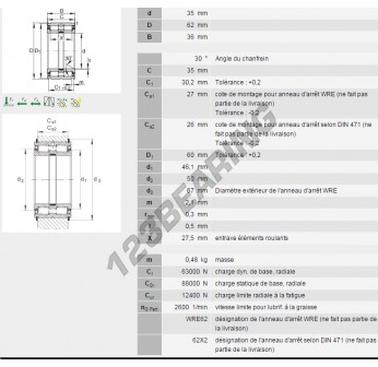 Łożysko Wałeczkowe, znany pod numerem referencyjnym SL045007-PP-INA, marki INA, posiada średnicę wewnętrzną 35 mm, średnicę zewnętrzną 62 mm oraz grubość 36 mm.