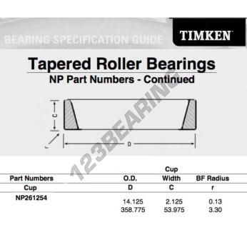Pierścień Zewnętrzny łożyska, znana pod numerem referencyjnym NP261254-TIMKEN, marki TIMKEN, posiada średnicę zewnętrzną 358.775 mm.