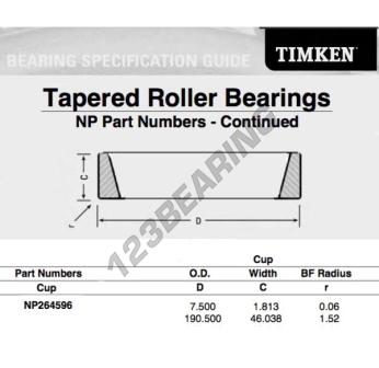 Pierścień Zewnętrzny łożyska, znana pod numerem referencyjnym NP264596-TIMKEN, marki TIMKEN, posiada średnicę zewnętrzną 190.5 mm.