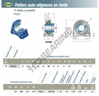 Zespoły łożyskowe 2 śruby, znany pod numerem referencyjnym EXPG201-SNR SNR, posiada średnicę otworu 12 mm oraz rozstaw otworów montażowych 49 mm. Ten produkt został wykonany z materiału żeliwo, a typ mocowania to Mimośrodowy pierścień blokujący.