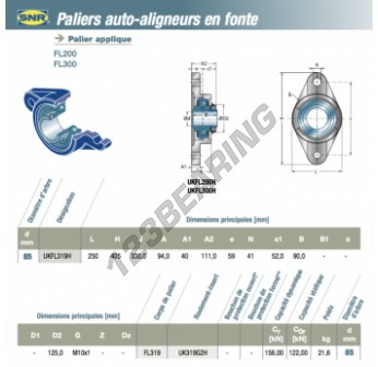 Zespoły łożyskowe 2 śruby, znany pod numerem referencyjnym UKFL319H-SNR SNR, posiada średnicę otworu 85 mm oraz rozstaw otworów montażowych 330 mm. Ten produkt został wykonany z materiału żeliwo, a typ mocowania to Tuleja zaciskowa.